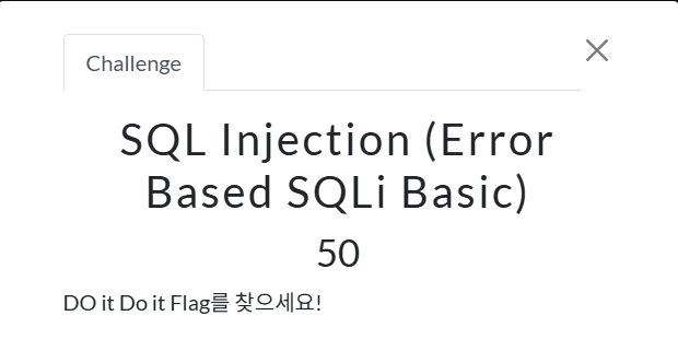 이번 문제는 Error Based SQL Injection에 대한 기초적인 문제이다.